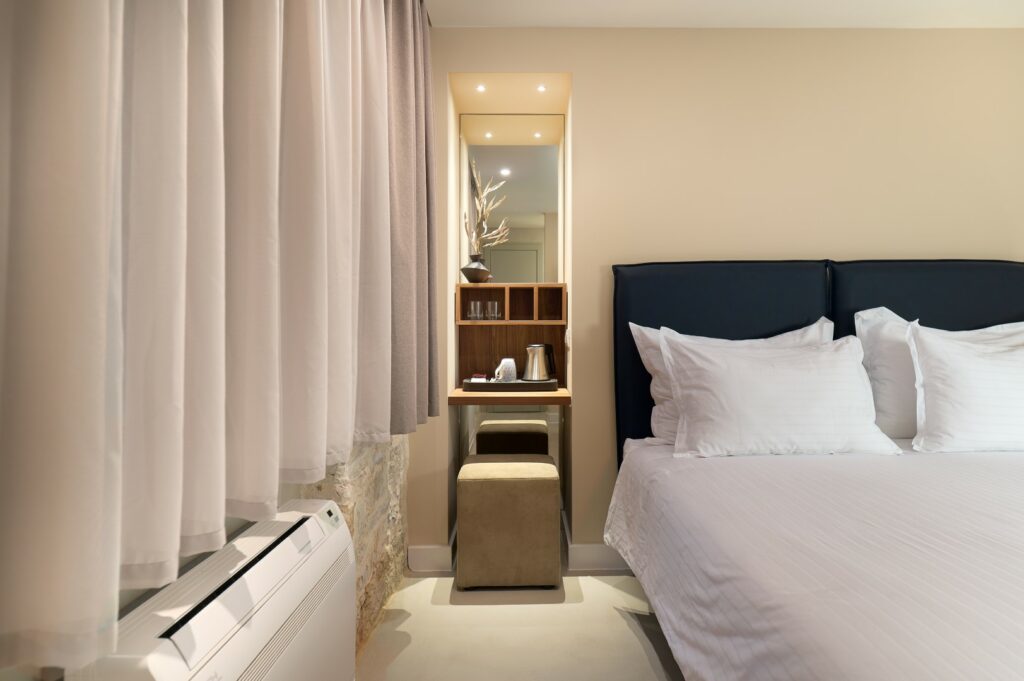 Each corner of our boutique establishment tells a story — from exposed ancient stone walls to hand-restored ceiling frescoes that transport guests to a bygone era. Yet within these historic confines, modern luxury flourishes. Our 24 uniquely designed rooms and suites offer a sanctuary of comfort after days spent exploring Split’s labyrinthine streets.